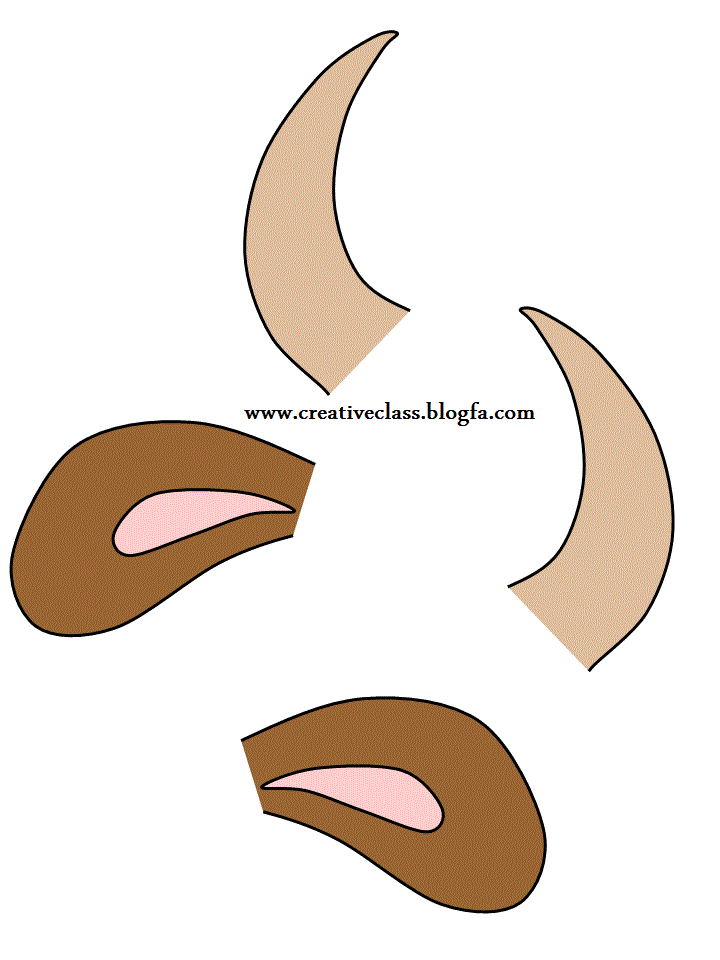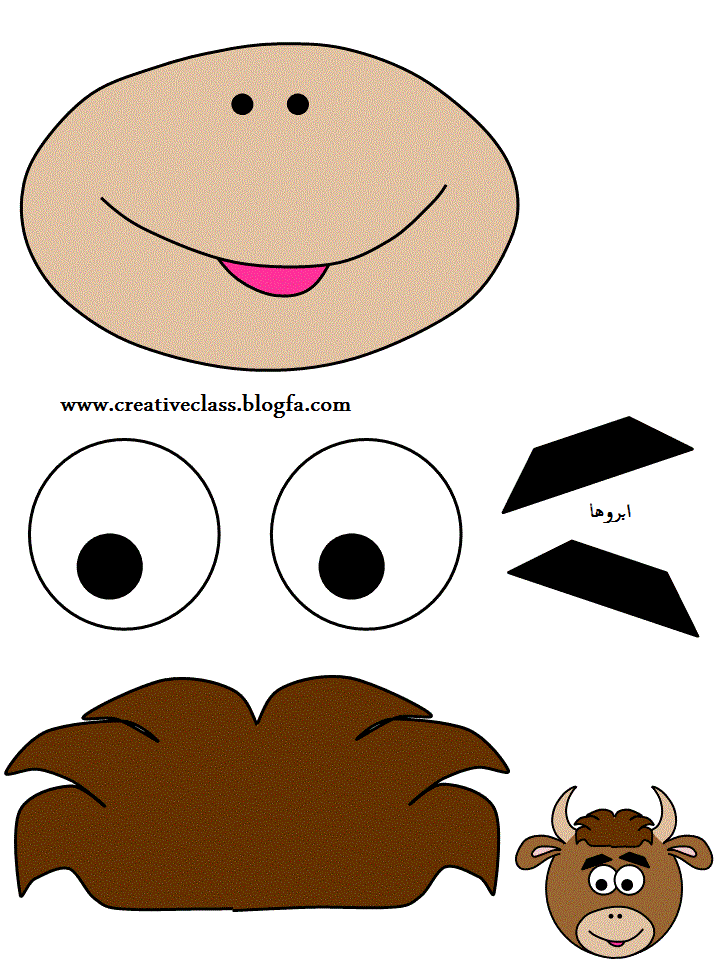 بشقاب کاغذی را با قلم مو رنگ قهوه ای بزنید .الگوی مو ،گوش ،چشم ،شاخ ،ابرو و دهان (الگوی قابل چاپ۱ ، الگوی قابل چاپ 2)را با قیچی برش بزنید و آنها را در جای خود با چسب مایع بچسبانید .