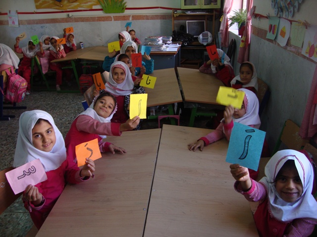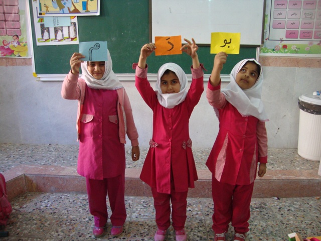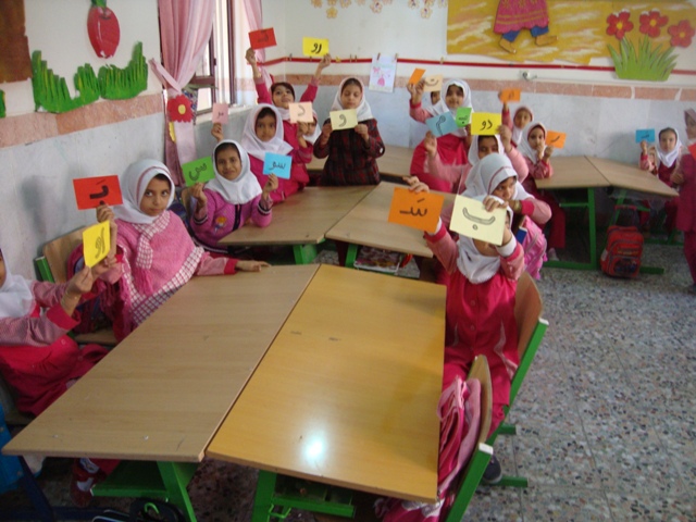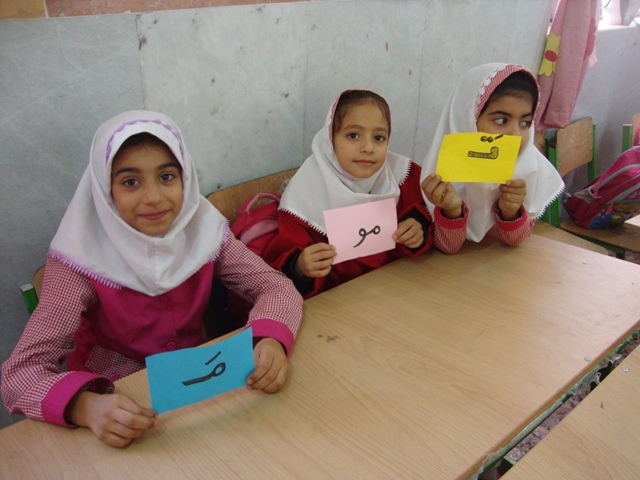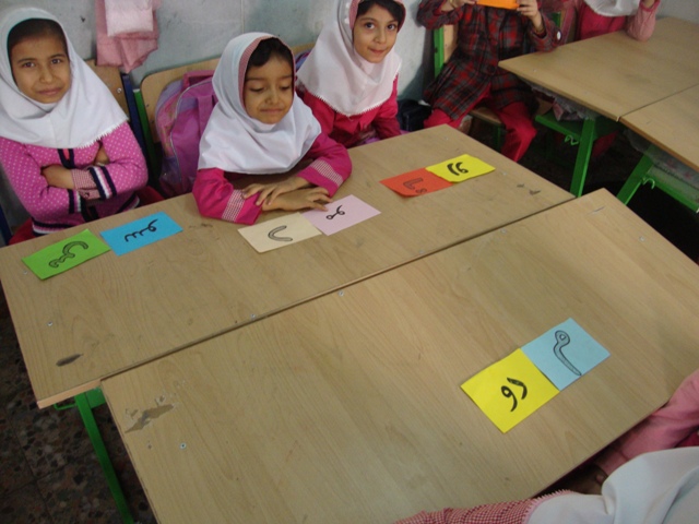 کلمه سازی با کارت های رنگی : نشانه هایی که تدریس شده و ترکیب صامت ها و مصوت ها را روی کارت های رنگی می نویسیم و در اختیار دانش آموزان قرار می دهیم طریقه بازی اینگونه است که کلمه ای که می خواهیم بسازیم ، صداهای آن را می گوییم تا دانش آموزانی که صدای مربوطه را دارند به جلو کلاس بیایند و کلمه را بسازند و بعد از دانش آموزان می خواهیم تا کلمه را با صدای بلند تکرار کنند .دانش آموزانی که در کلمه سازی ضعیف هستند و یا در روخوانی مشکل دارند با این روش به خوبی کلمات را می خوانند و با ترکیب صامت و مصوت کلمه جدید می سازند .برای این که کلمه سازی برای بچه ها هیجان انگیز و لذت بخش شود بهتر است با تشویق و دست زدن همراه باشد و از دانش آموزان بخواهیم کلمه ای که معلم می گوید سه بار دسته جمعی تکرار کنند تا دانش آموزانی که نشانه ها را دارند به جلو کلاس بیایند. (دانش آموزانی که در کلمه سازی سرعت عمل دارند مورد تشویق قرار می گیرند .)